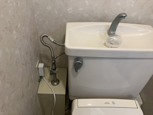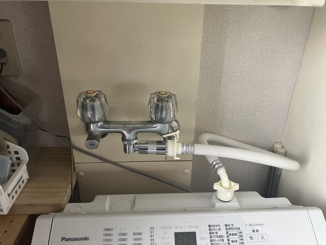 交換前の状態です。洗濯機用混合水栓とトイレ止水栓を交換します。