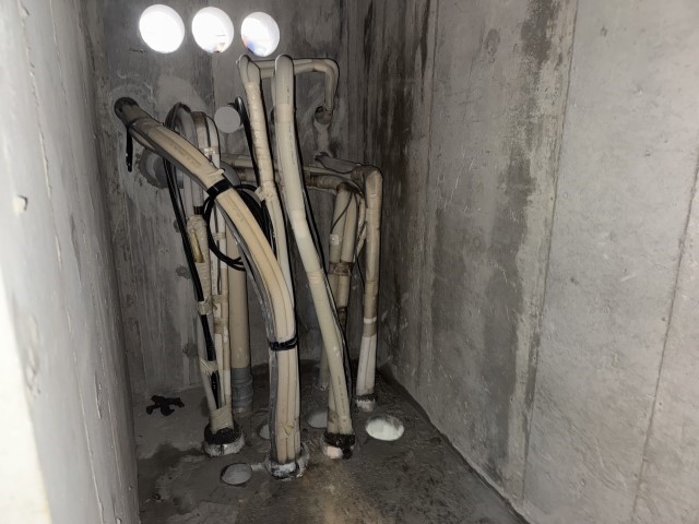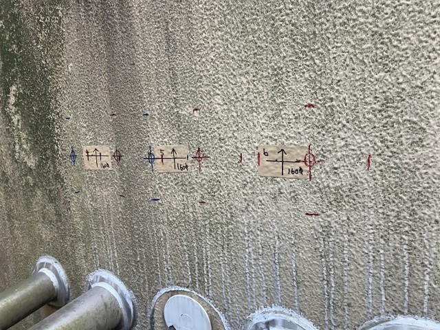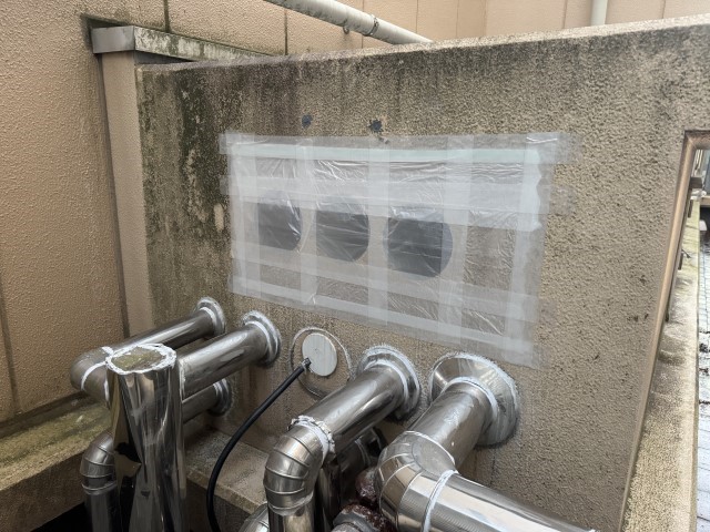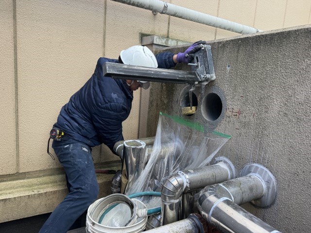 配管を通すための穴を作るコア抜き工事の事例です。穴をあける前にマーキングをします。