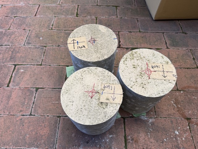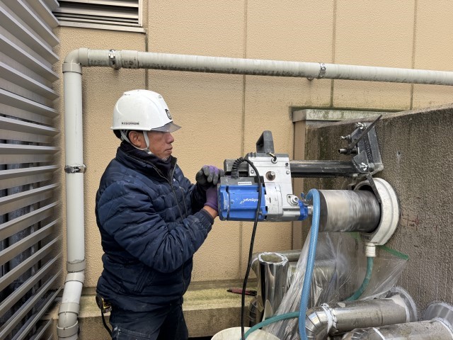 コア抜き機械をセットしてコア抜きを行います。今回は穴を3つあけます。