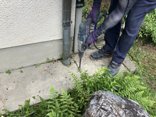 個人宅の漏水修理工事です。漏水箇所のコンクリートを割って配管を探します。
