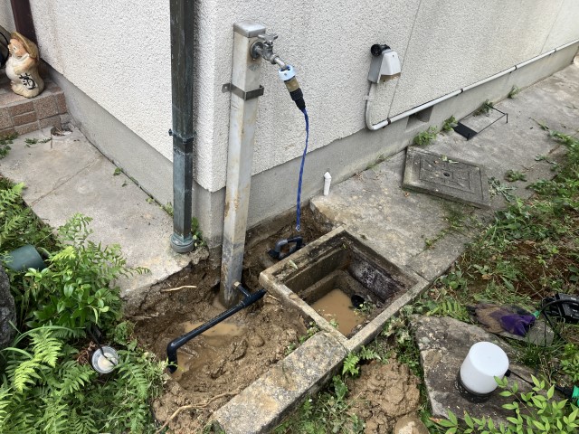 施工前の状態です。埋設給水管から漏水しています。
