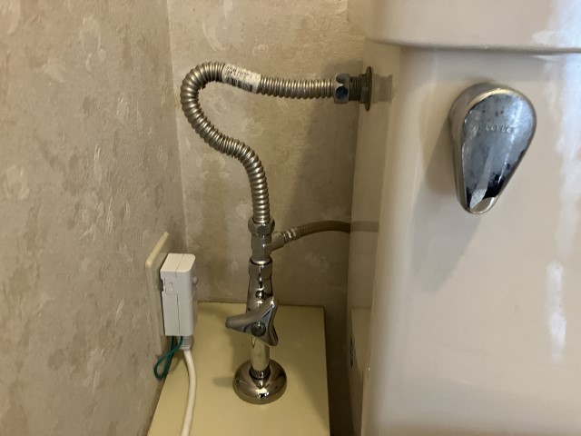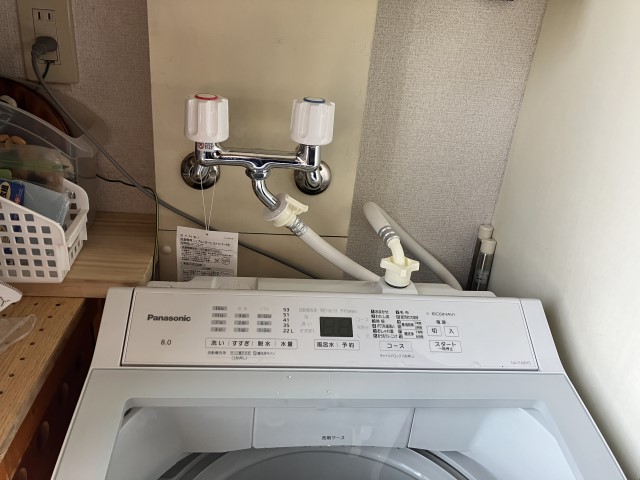 交換前の状態です。洗濯機用混合水栓とトイレ止水栓を交換します。