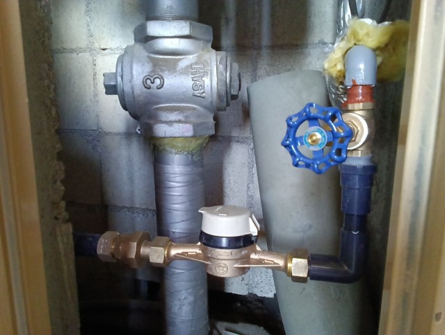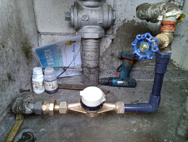 マンションの水道メーター、バルブ交換の現場です。