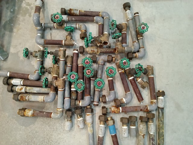 各部屋の撤去管とバルブです。管内には詰まってしまいそうなほど錆が付いているものもあります。